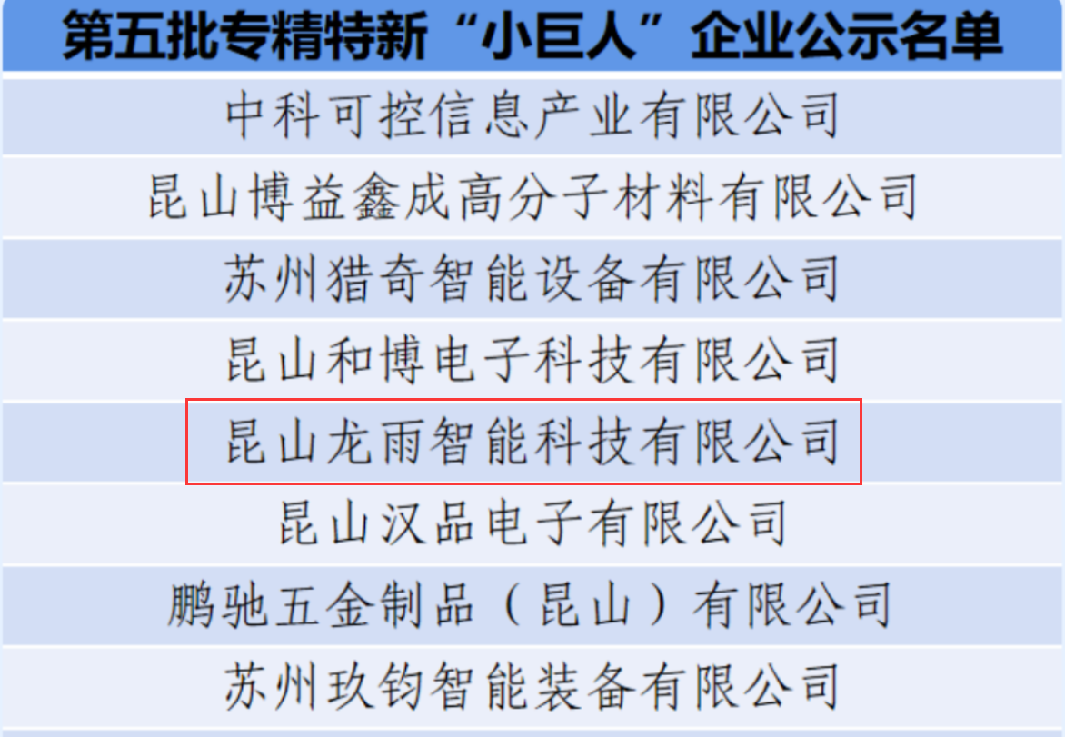 龍雨智能成功獲得國(guó)家級(jí)專精特新“小巨人”稱號(hào)