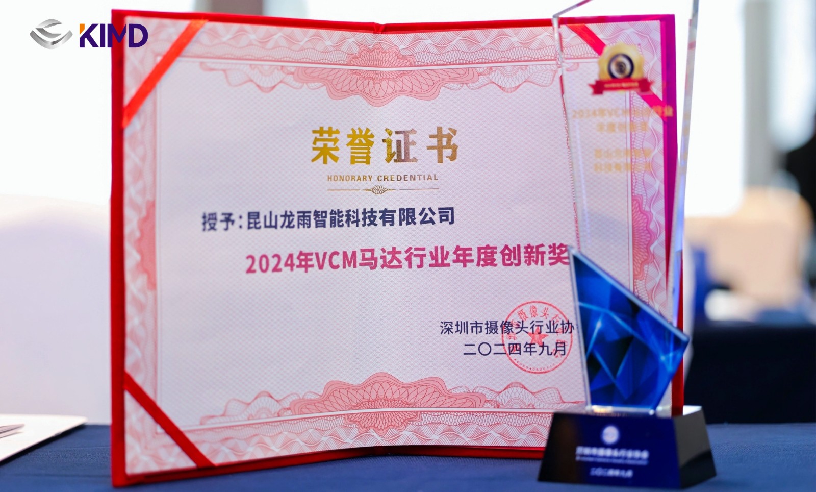 此次盛會上,龍雨智能憑借其在VCM馬達領域的杰出貢獻與創(chuàng)新突破,榮獲“2024年VCM馬達行業(yè)年度創(chuàng)新獎”。這一殊榮不僅是對龍雨智能技術創(chuàng)新實力的高度認可,更是對公司不懈追求卓越的最好證明。公司銷售總監(jiān)連橋先生親自上臺領獎。